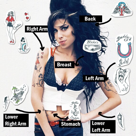 Amy Winehouse Temporary Tattoo Set Amy Winehouse Tattoos Etsy